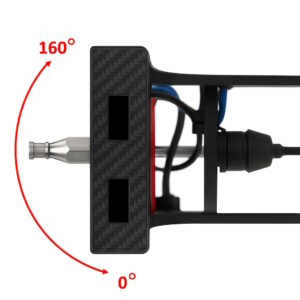 Stufenlose Ausrichtung von 0° vertikal nach unten bis 160° schräg nach oben.