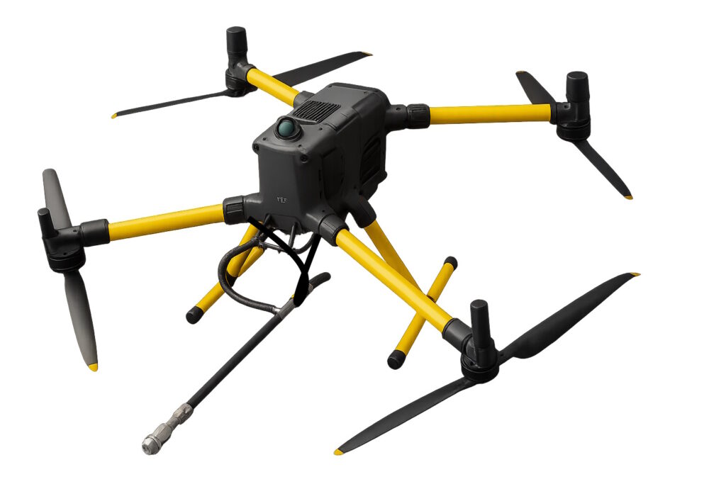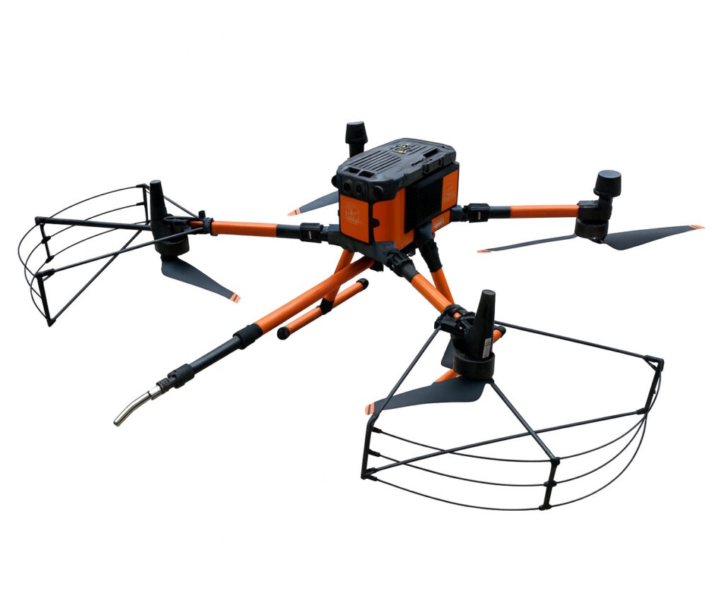 Universaldrohne mit Kamera- und Inspektionsfunktionen, erweiterbar mit Standard-Sprühlast für leichte Reinigungsarbeiten.