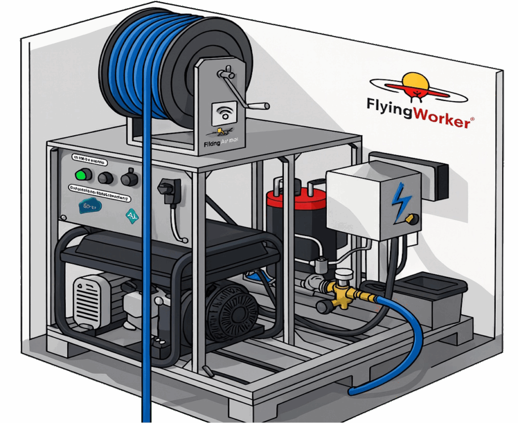 Seit 2021 entwickeln wir bei FlyingWorker spezialisierte Reinigungsdrohnen und Wasseranlagen für die professionelle Reinigungsindustrie.